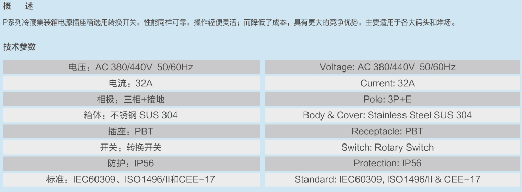 P型系列冷藏集裝箱電源插座箱下插式 | |||