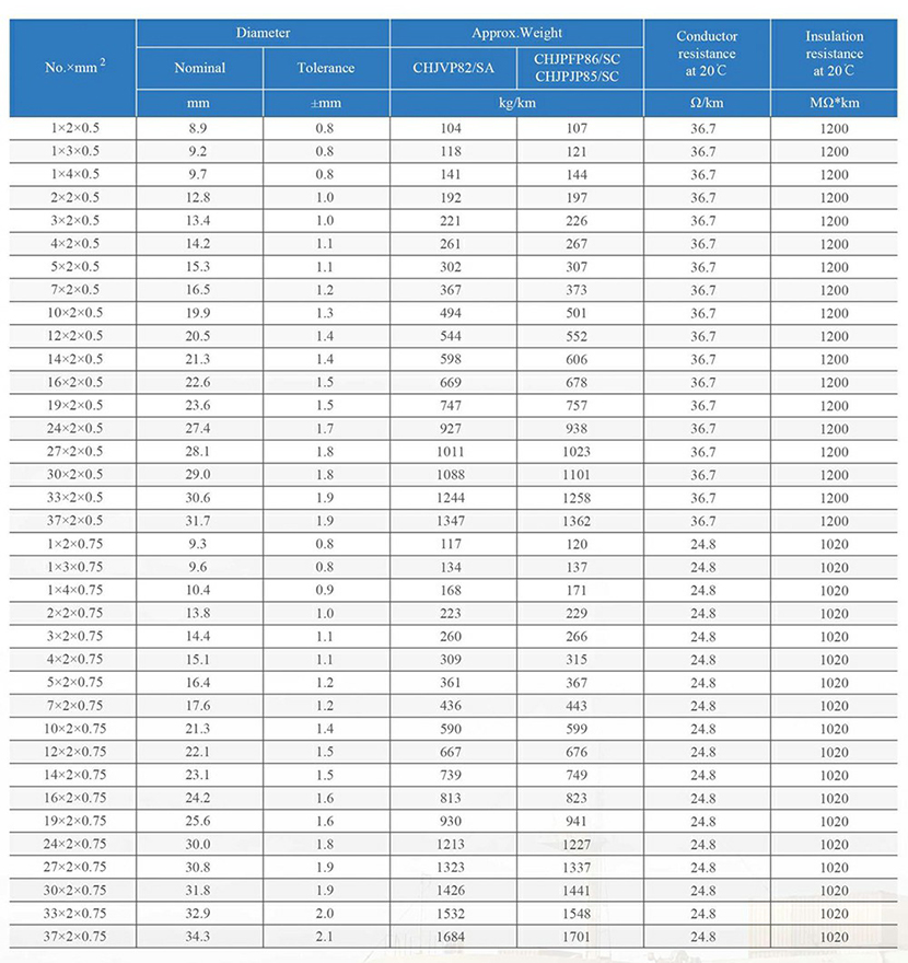 20℃時的導體電阻: | 36.7Ω/km | 20℃時的絕緣電阻: | 1200MΩ×km |