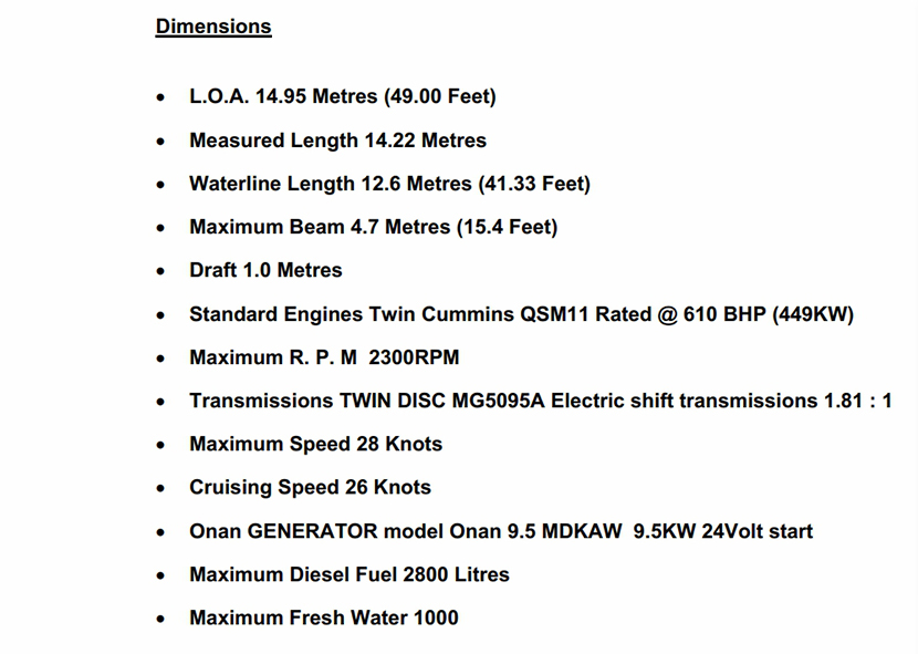 燃油容量: | 2800litres | 水線長度: | 12.6m |