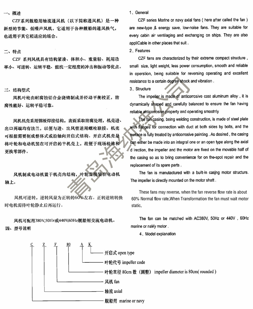 CZF系列艦船用軸流通風機 | |||
