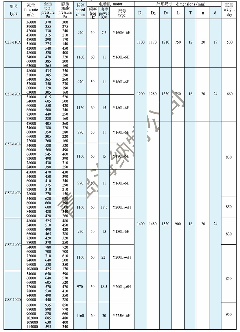 全壓: | 425Pa | 電機功率: | 22kW |