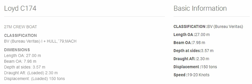 型寬: | 7.98m | 吃水深度: | 2.30m |