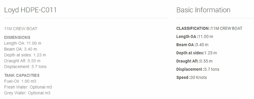 總長: | 11.00m | 航速: | 30kn |