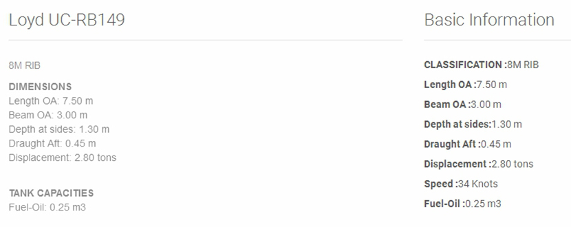 總長: | 7.5m | 航速: | 34kn |