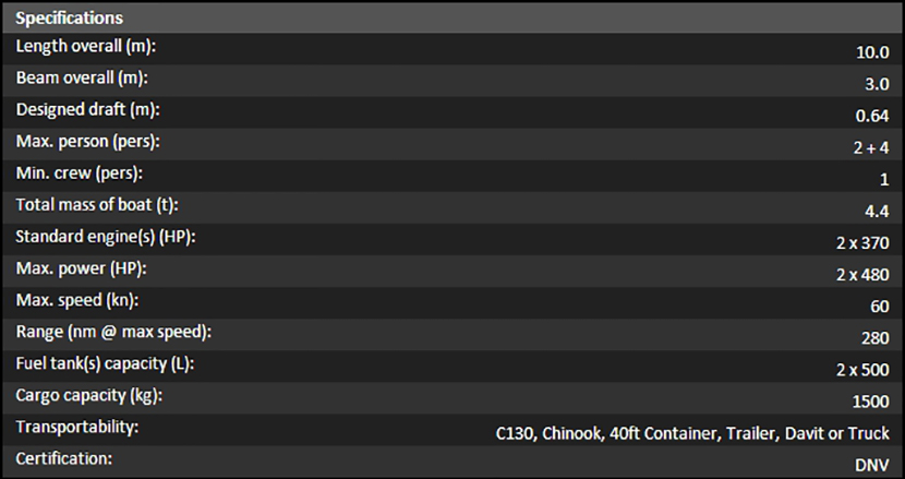 總長: | 10m | 航速: | 60kn |