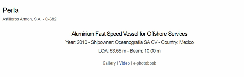 總長(zhǎng): | 53.55m | 船東: | Oceanografia SA CV |