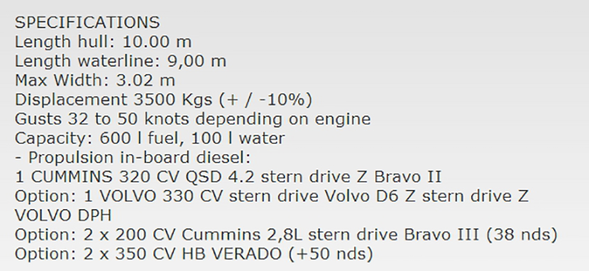 總長: 10.00m 航速: 33kn