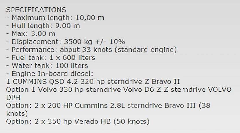 總長: | 10.00m | 航速: | 33kn |