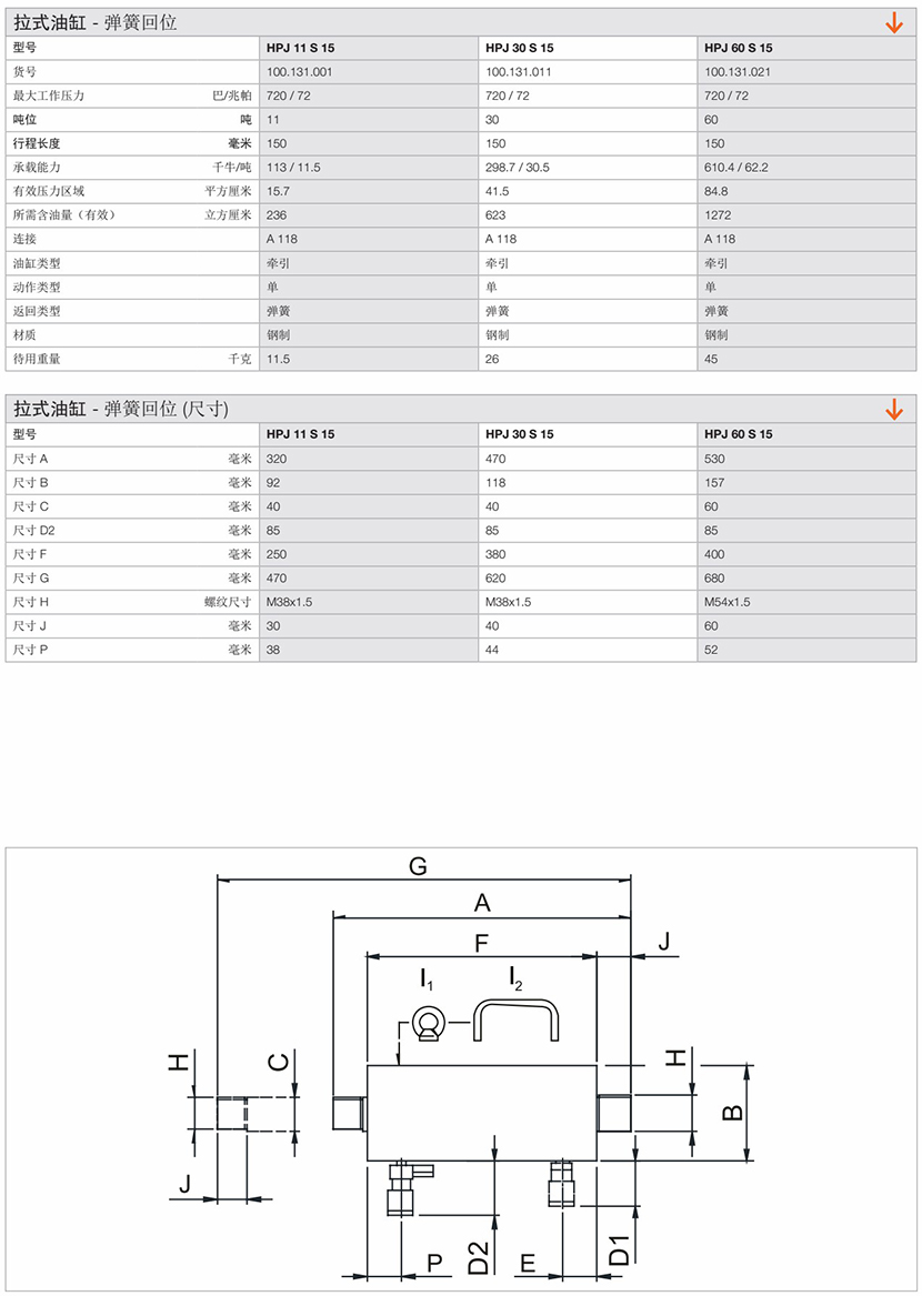 拉式彈簧回位油缸 | |||