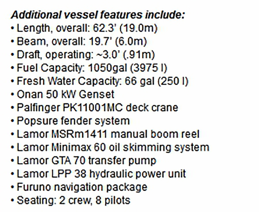 總長: | 21m | 燃油容量: | 1050 gallons |