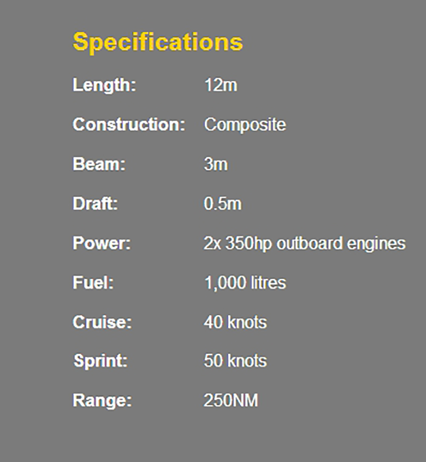 12米剛性船體充氣高速攔截艇 | |||