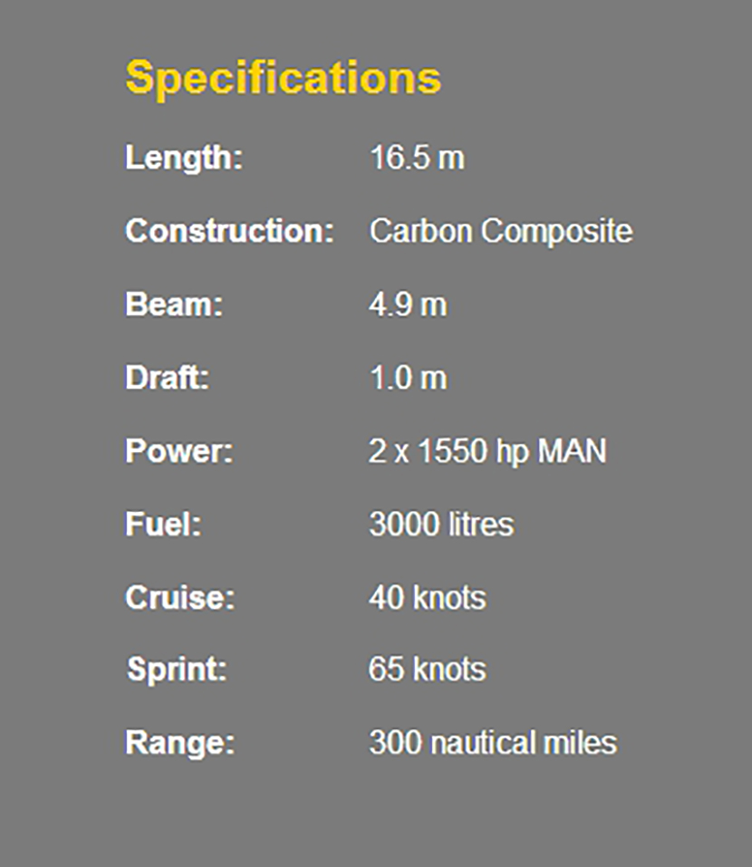 總長: | 16.5m | 航速: | 40kn |