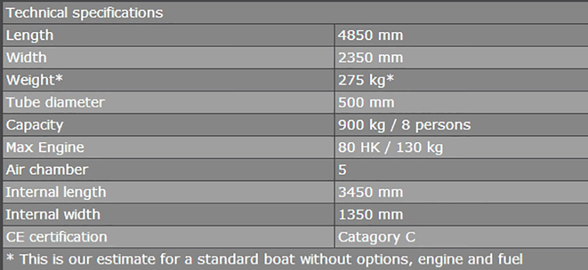 總長: | 4.85m | 最大乘員: | 8p |