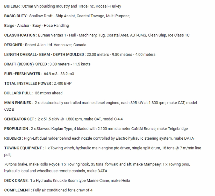 發動機功率: | 2×895kW at 1800 rpm | 型寬: | 9.80m |