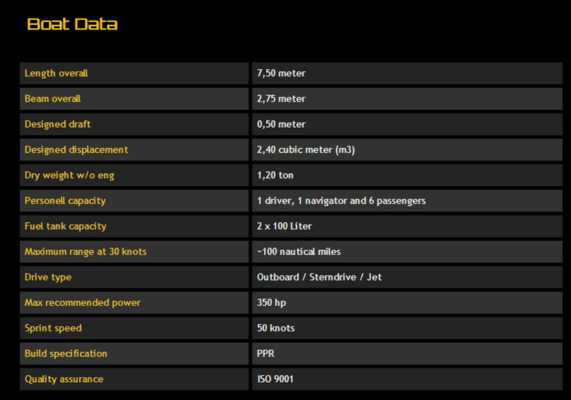總長: | 7.50m | 航速: | 50kn |