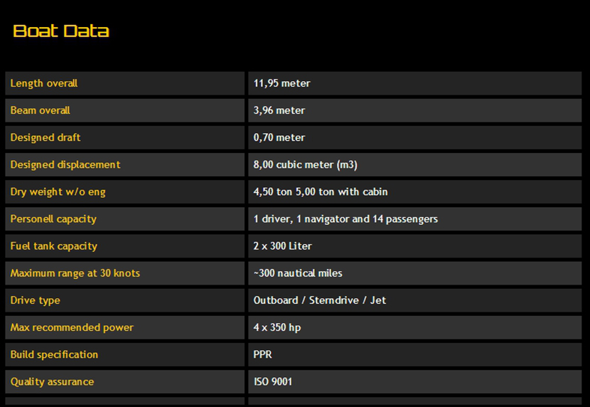 總長: | 11.95m | 最大乘員: | 16p |