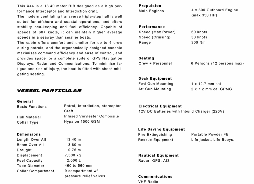 13.4米剛性船體充氣巡邏艇 | |||
