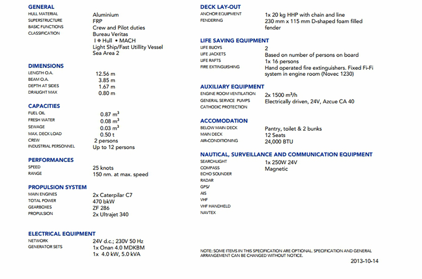 發電機組: | 2×Caterpilar C7 | 船組人員: | 2 P |