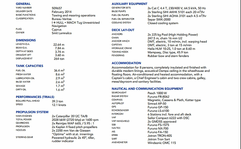 發(fā)動機品牌: | Caterpilar 3512C TA/B | 發(fā)動機功率: | 2×1014 kW at 1600rpm |