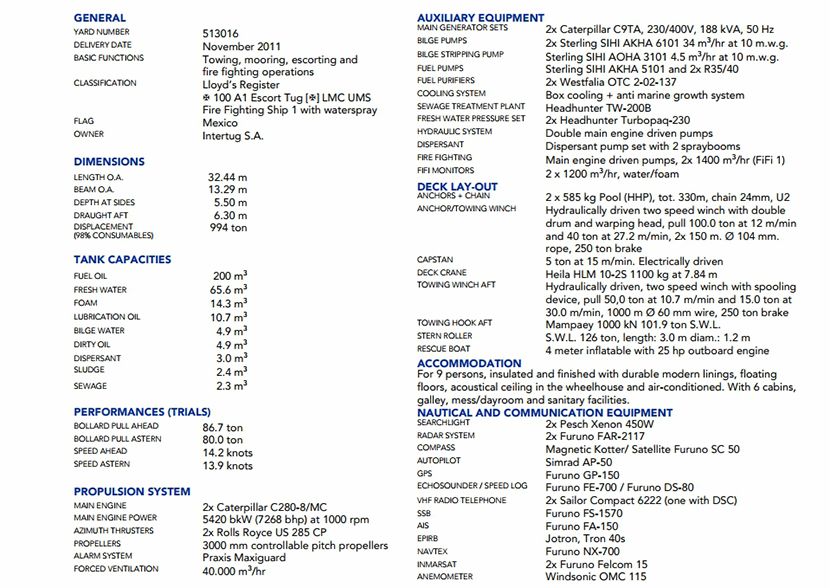 發動機品牌: | Caterpilar C280-B /MC | 發動機功率: | 2×2710 kW at 1000rpm |