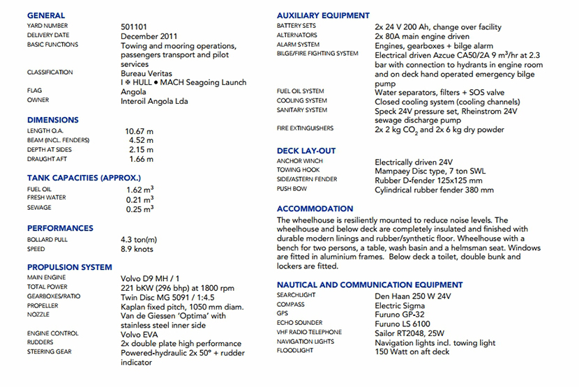 發動機品牌: | Volvo D9MH | 齒輪箱: | Twin Disc MG5091 |