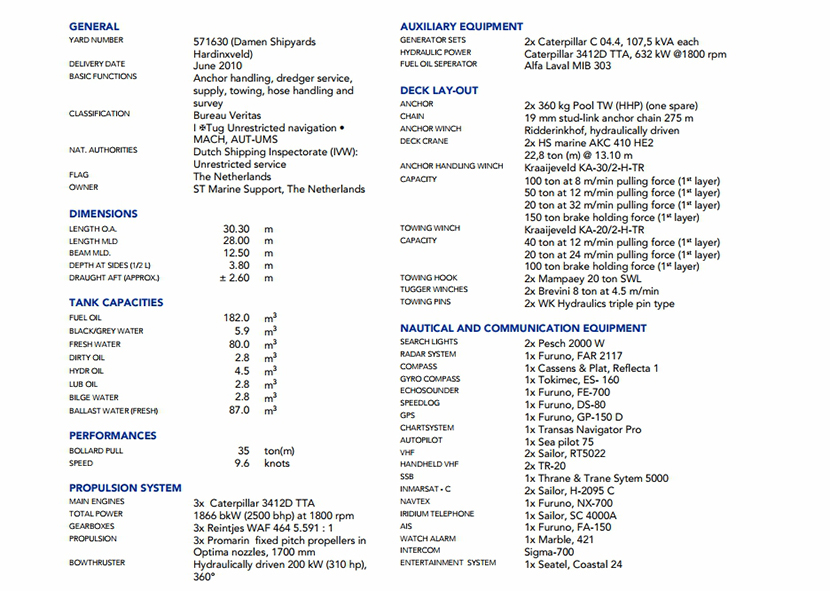 發電機組: | 2×Caterpilar 3512D TTA | 齒輪箱: | 3×Reintjes WAF 464L |