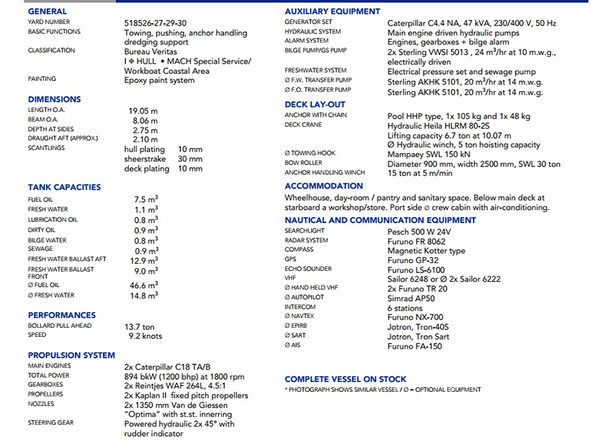發電機組: | 2×Caterpilar C18 TA/B | 齒輪箱: | 2×Reintjes WAF 246L |