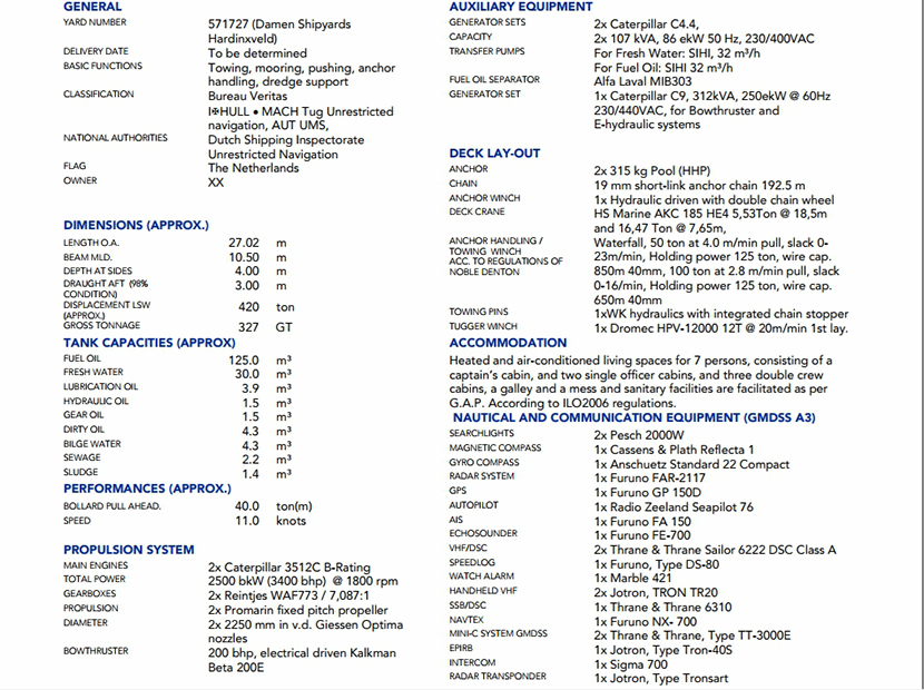 發(fā)電機組: | 2×Caterpilar 3512B | 齒輪箱: | 2×Reintjes WAF 773L |