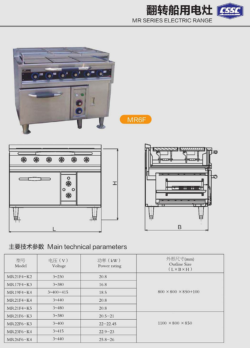 | 類型: | 船用電灶 | 外形尺寸: | 1100×800×850mm(L×B×H) |