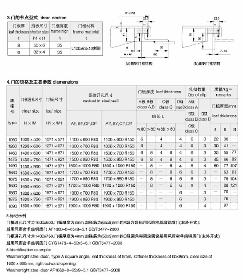 船用風雨密單扇鋼質門加裝固定窗 | |||