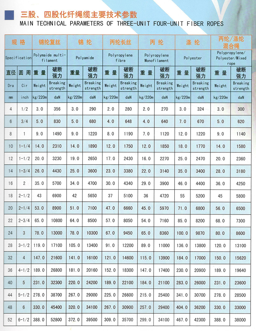 | 錦綸復絲三股四股化纖繩纜 | |||
