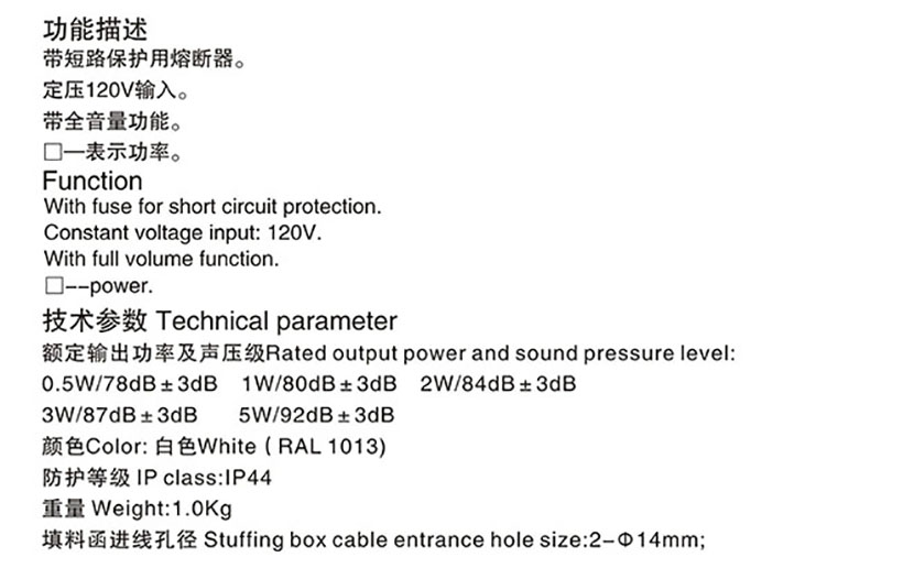 功率: | 0.5W | 聲壓等級: | 78dB |