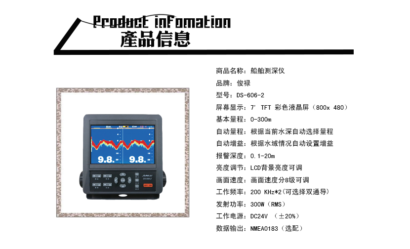工作頻率: | 200 KHz×2(可選擇雙通導) | 發射功率: | 300W |