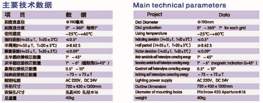 主半圓自差校正能量: | 1°~45° | 次半圓自差校正能量: | 1°~6° |
