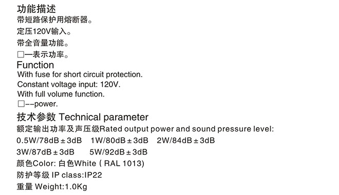 功率: | 1W | 聲壓等級: | 80dB |