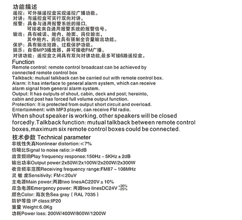 頻率: | FM87~108MHz | 重量: | 6.0Kg |