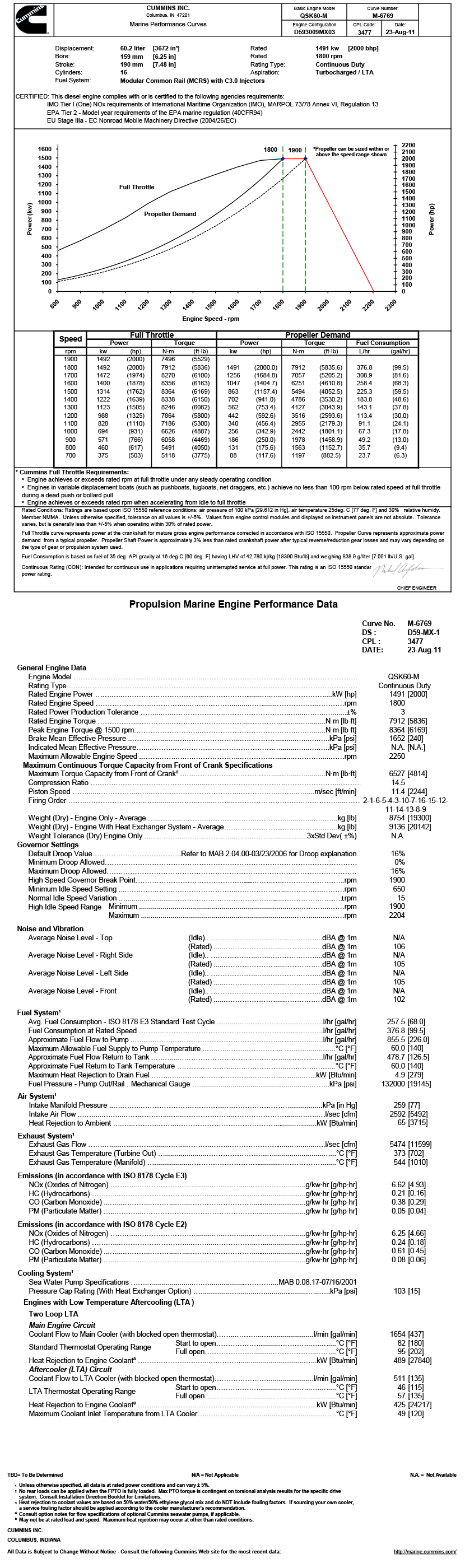 進氣方式: Turbocharged/LTA 最大扭矩: 8364N.M(轉速為1500rpm下的最大扭矩)