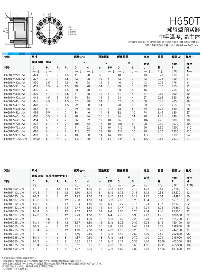 中等溫度,高主體螺母型預(yù)緊器 | |||