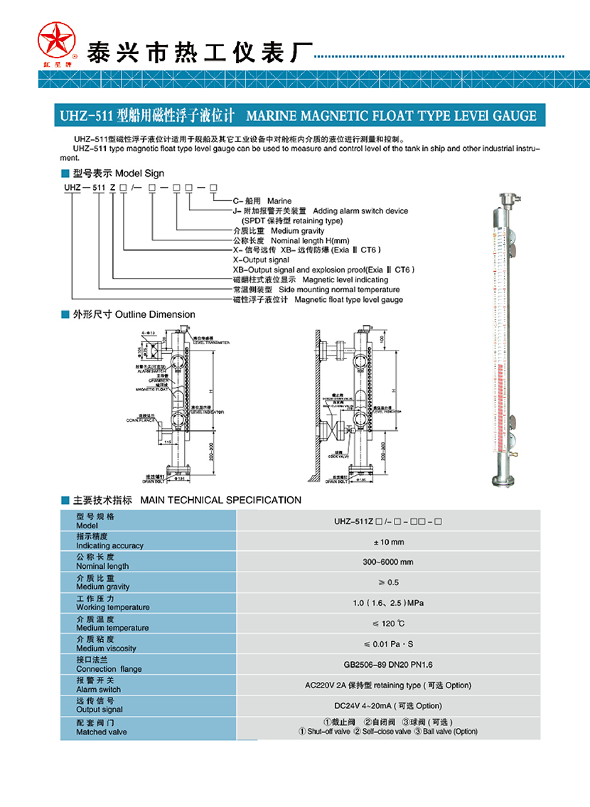 UHZ-511型船用磁性浮子液位計 | |||