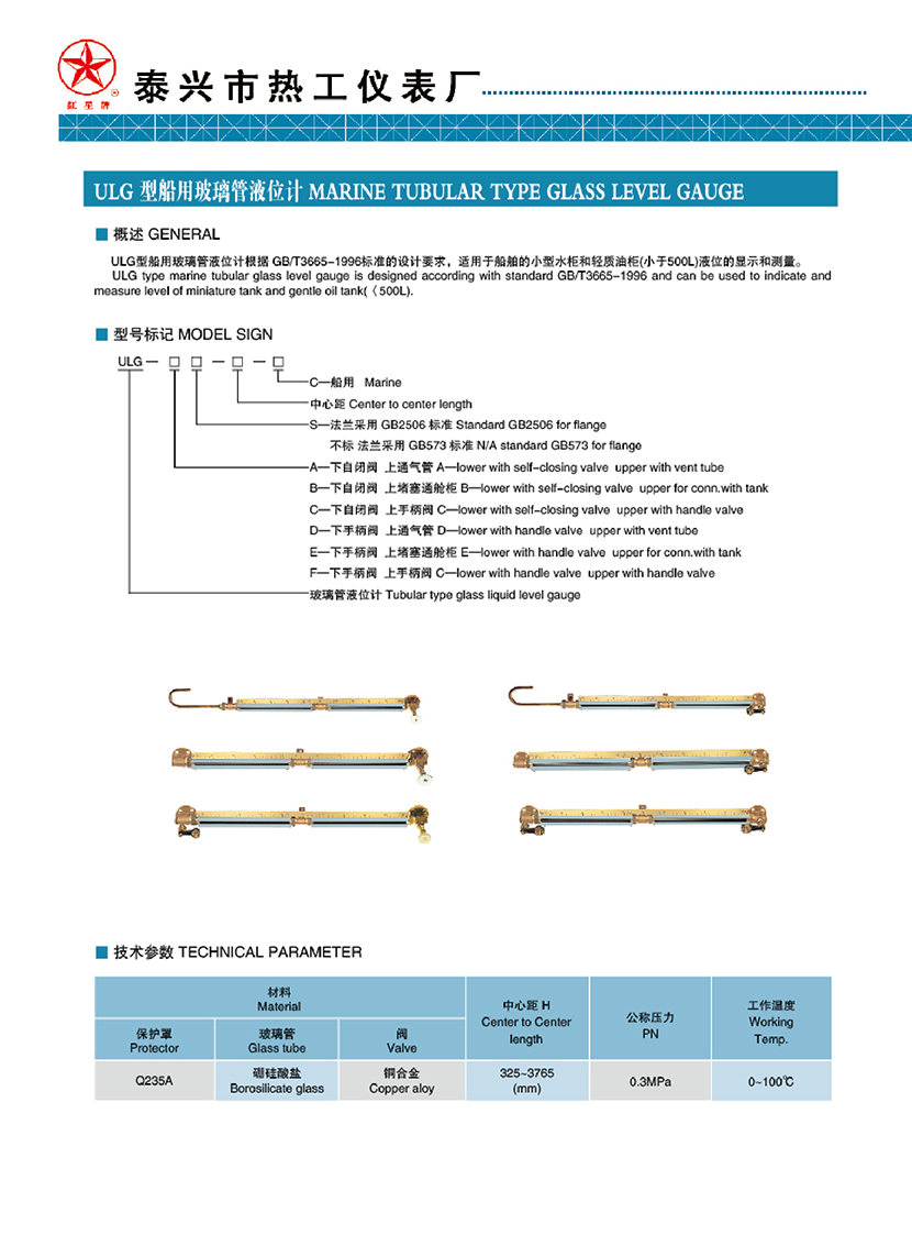 ULG型船用玻璃管液位計 | |||