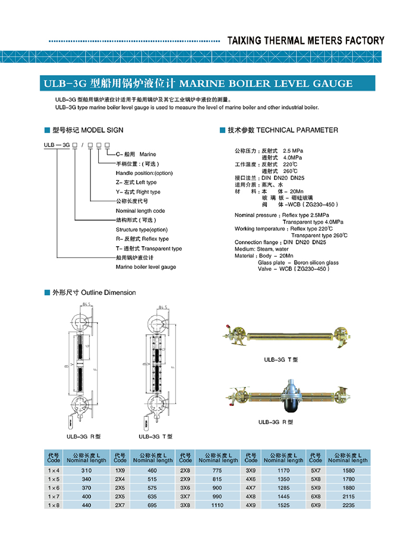 ULB-3G型船用鍋爐液位計 | |||