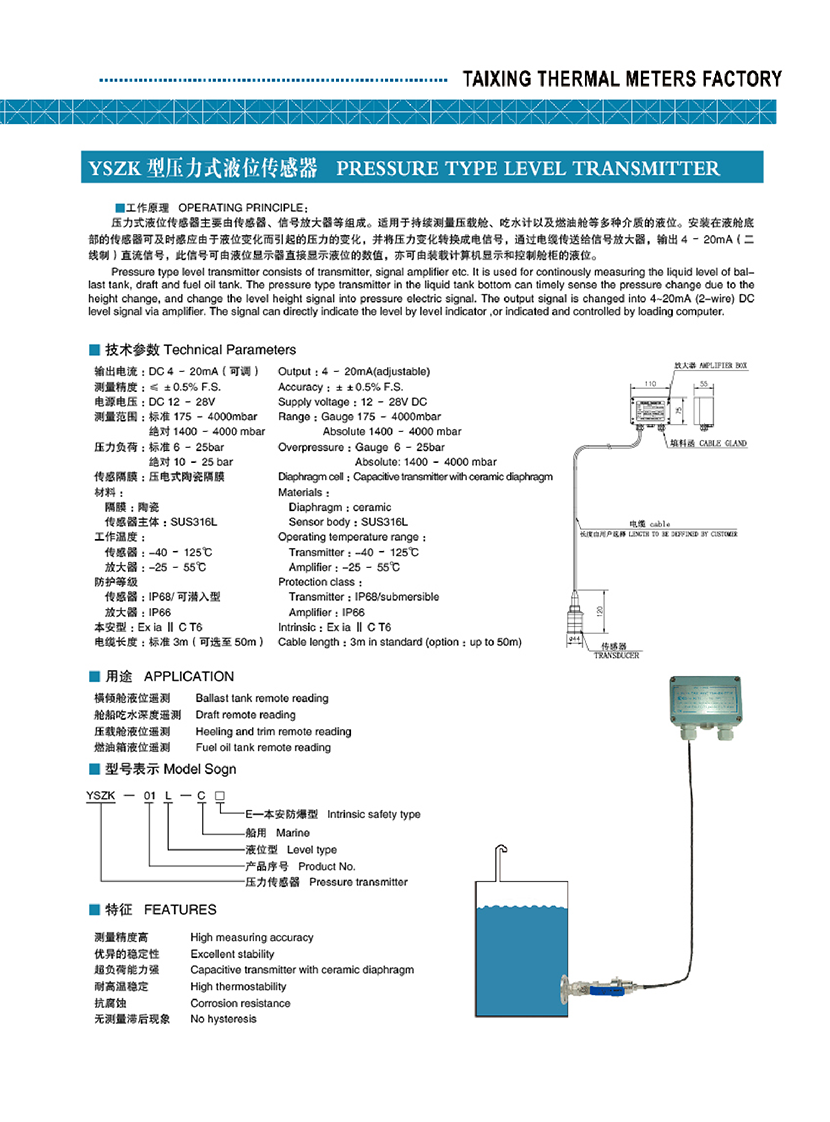 YSZK型壓力式液位傳感器 | |||