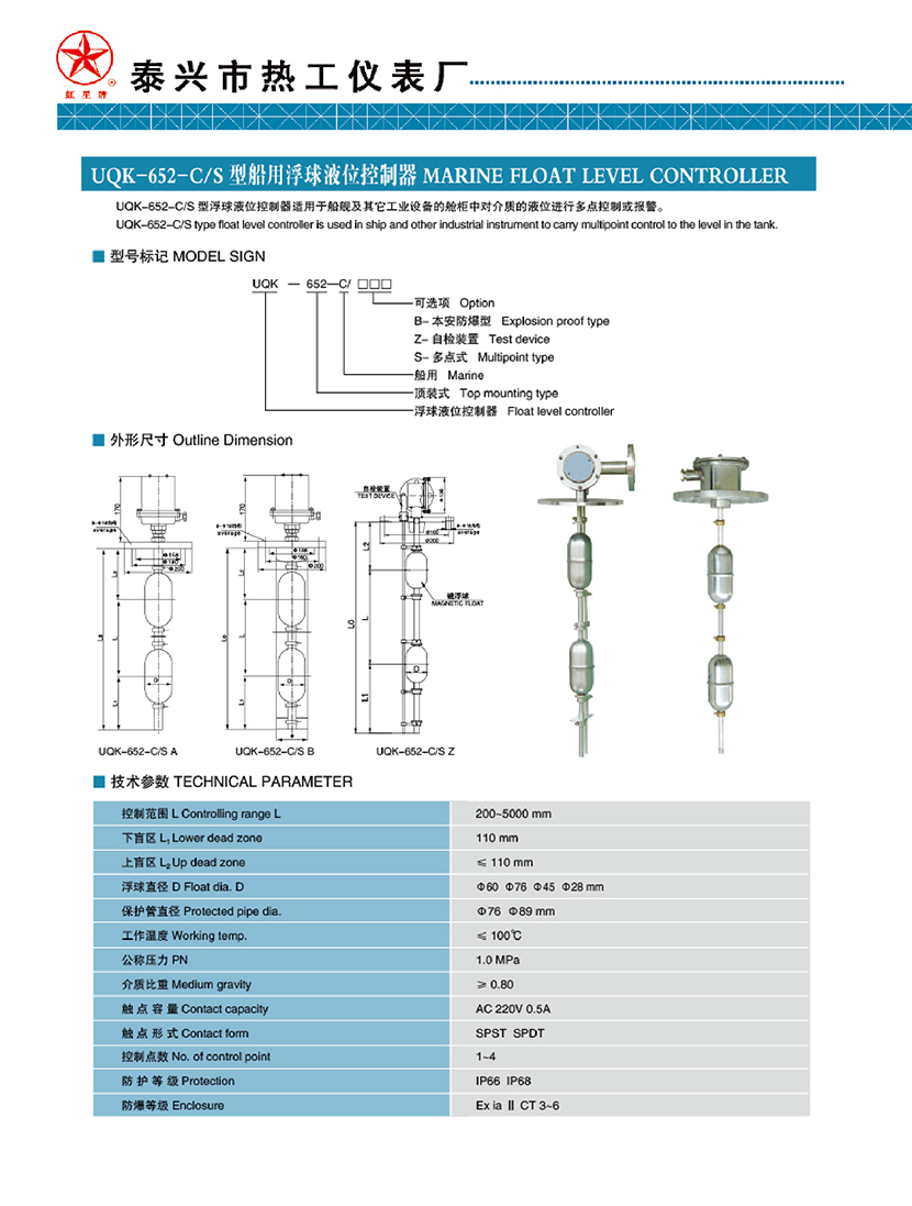 UQK-652-C/S型船用浮球液位控制器 | |||