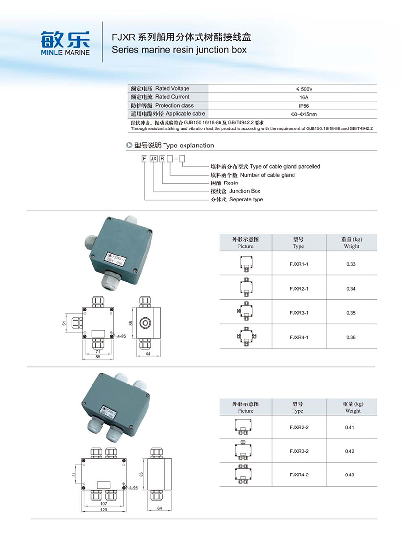 FJXR系列船用分體式樹酯接線盒 | |||