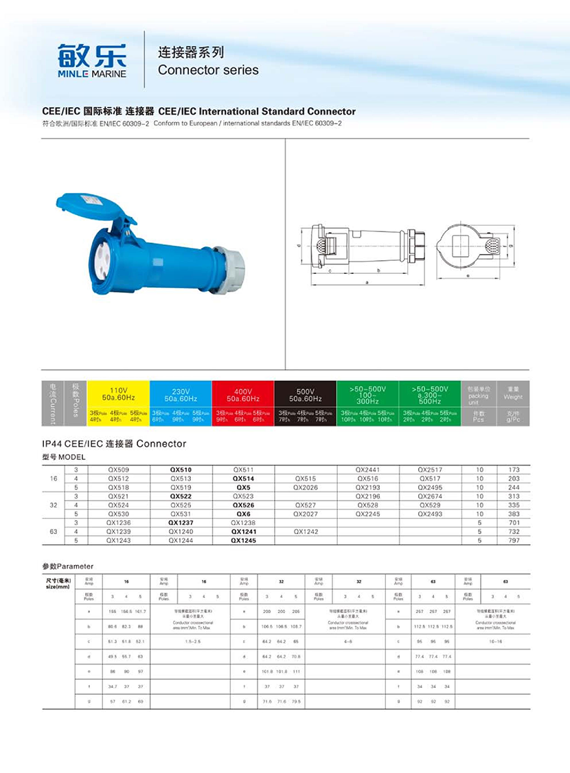 | 類型: | 船用連接器 | 電壓: | 500V |