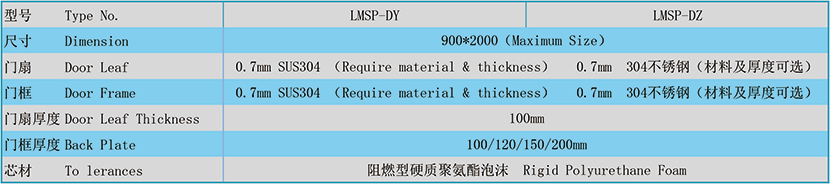 門框整體厚度: 100/120/150/200mm 門扇整體厚度: 100mm