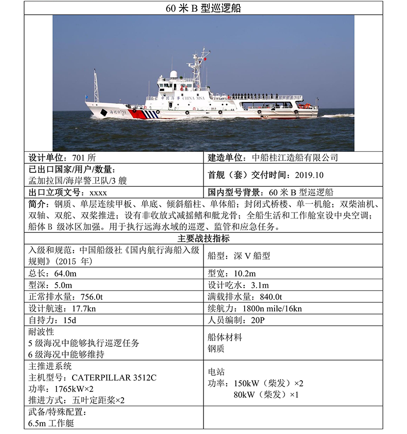 60米B型巡邏船 | |||