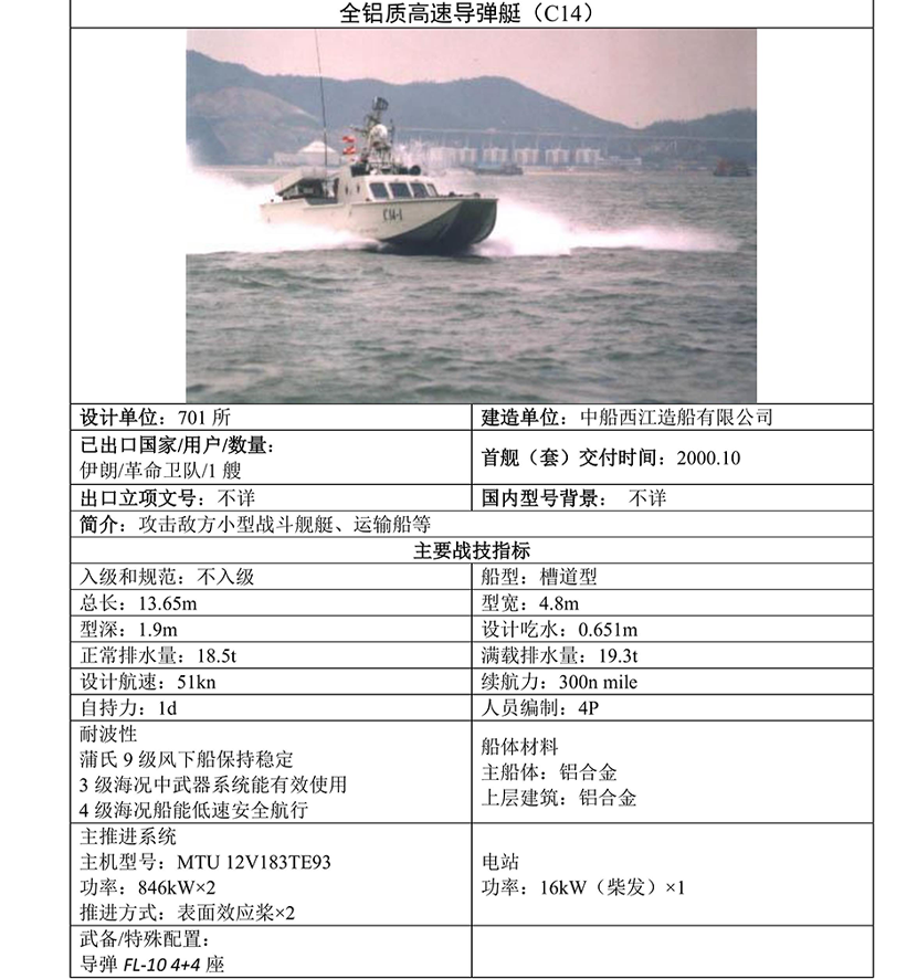 C14全鋁質高速導彈艇 | |||